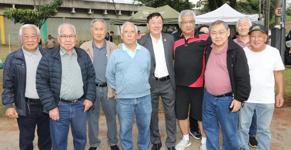 Hiroyuki Minami, secretário executivo de Programas Governamentais de São Bernardo, e membros da colônia japonesa de São Bernardo, se reuniram, no sábado (24), na praça Kasato Maru para a celebração monumental do ano de 2026.
