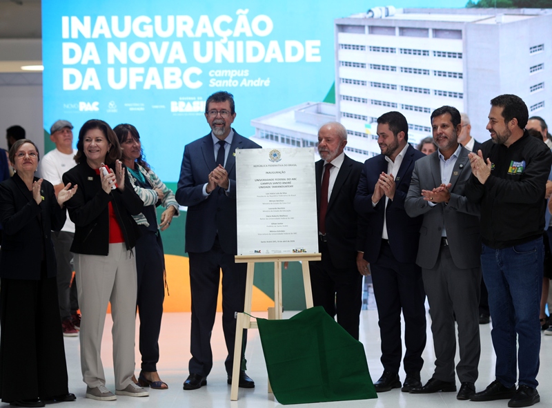 A Universidade Federal do ABC (UFABC) inaugurou, na sexta (10), a nova unidade Tamanduatehy do Campus Santo André, localizada na Avenida dos Estados. O presidente Luiz Inácio Lula da Silva esteve presente na cerimônia, acompanhado do ministro da Educação, Leonardo Barchini, e do reitor da UFABC, Dácio Matheus.