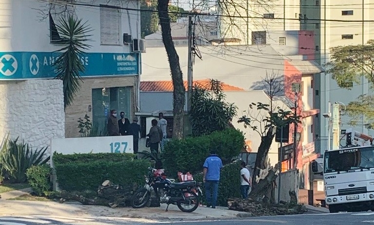 Na quarta (12), por volta das 22h30, na rua Cesário Bastos, esquina com a rua Carlota, região Central de Santo André, uma serra elétrica trabalhou a todo vapor para a derrubada de uma árvore. Para não chamar a atenção, optou-se por arrancá-la à noite, porém o barulho estarrecedor acordou os moradores das imediações.