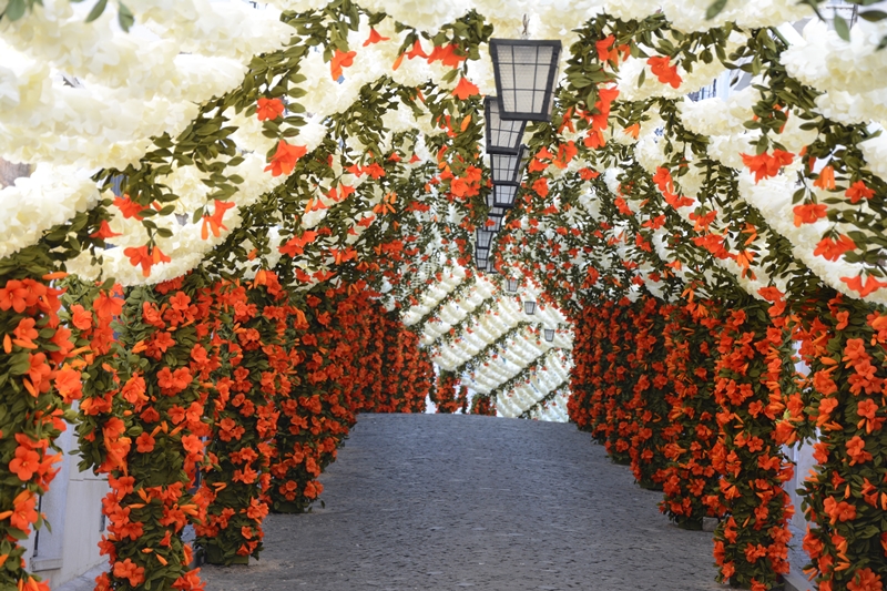 Meses antes do evento, casas e garagens se transformam em ateliês improvisados, onde os moradores se reúnem para produzir rosas, cravos, dálias e girassóis de papel. Para dar vida às flores decorativas, são utilizadas mais de 30 toneladas de materiais, incluindo grandes quantidades de papel, cartão, cartolinas, cola e arame, que depois se transformam em verdadeiros jardins suspensos a céu aberto. Mantida desde 1893, essa arte atravessa gerações e reflete a dedicação e o orgulho dos moradores com a tradição das festas.