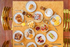 Iguarias doces e salgadas que podem ser degustadas durante todo o dia! Do café da manhã à hora do chá, os clientes já podem deliciar-se com bolos secos, saladas, sanduíches, macarons e bolos icônicos da Maison, como o Ispahan ou o Plaisir Sucré, e novas criações imaginadas por Julien Alvarez.