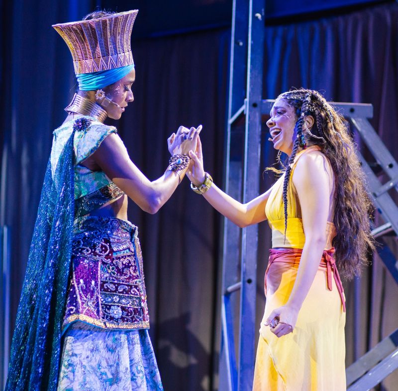 Em cena, o espetáculo reúne nomes reconhecidos do teatro musical brasileiro e uma nova geração de intérpretes. Laura Castro vive Leilani e também integra a produção do espetáculo, ao lado de Gigi Debei e Marília Lopes, que acumulam funções entre a produção e o elenco. No palco, Marília Lopes interpreta Yara, ao lado de Aline Serra como Deanna, João Ferreira como João Doidão, Ivan Parente como Ivo, Yudchi como Kadu, Gigi Debei como Sadé e Abrahão Costa como Azuri. A encenação se apoia ainda em uma estrutura que inclui covers, swings e ensemble, com Nayara Venâncio, Nicole Luz, Eddy Norole, Gabriel Kadu, Nicolas Mencalha, Sarah Macedo, Helena Bemelmans, Douglas Motta e Jeison Lopes, além de Ana Catharina Goulart, que atua também como assistente de coreografia e dance captain.