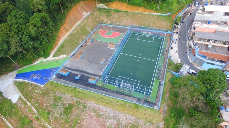 A revitalização do espaço demandou investimento da ordem de R$ 727 mil, sendo R$ 537 para implantação do kit quadra esportiva e R$ 190 mil para reparos no terreno.