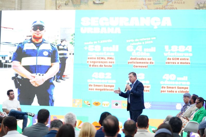 O secretário de Segurança Urbana, Orlando Morando, destacou que as câmeras do programa Smart Sampa serão grandes aliadas no combate à criminalidade durante as festividades na capital. “O acesso aos blocos, onde a gente tem a grande facilidade de fazer o reconhecimento facial, vai ser a grande chave para que a gente impeça ou efetue a prisão de qualquer procurado que tente acessar”, disse. “Queremos um Carnaval bonito, mas, acima de tudo, manter essa régua de ser o maior, melhor e mais seguro Carnaval do Brasil”, concluiu.