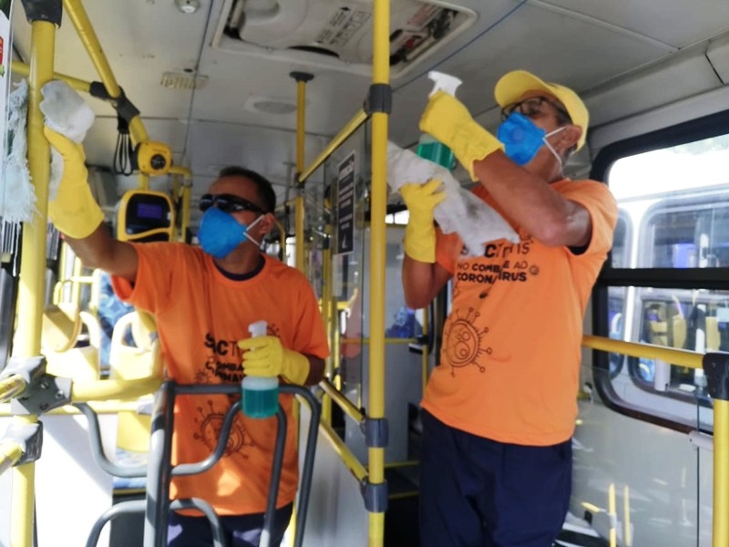 A equipe da SBCTrans está trabalhando nos locais de maior concentração de pessoas, além de garantir a higienização em intervalos de tempo menores nos terminais, pontos finais e pontos de parada, como Praça Brasil, terminal rodoviário João Setti e Riacho Grande. É feita a limpeza dos balaústres, de toda a parte de cobrança do motorista, console, bancos e demais pontos de contato do ônibus.