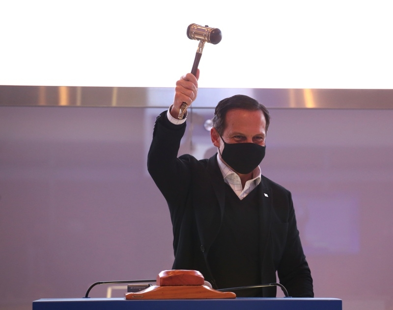 O governador João Doria acompanhou, na terça (20), na sede da B3 – bolsa de valores oficial do Brasil – o leilão de concessão das linhas 8-Diamante e 9-Esmeralda da CPTM para a iniciativa privada por prazo de 30 anos. O Consórcio ViaMobilidade Linhas 8 e 9, formado por Grupo CCR e Ruas Investimento e Participações S/A, venceu outros três concorrentes com uma oferta de R$ 980 milhões pela outorga fixa, o que representa ágio de 202% sobre o valor mínimo estipulado pelo Estado.