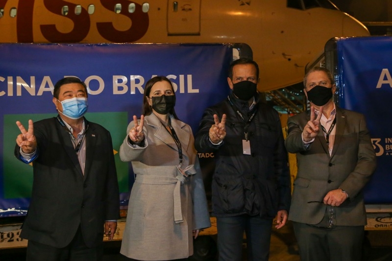 O governador João Doria acompanhou, nesta terça (13), a chegada de um lote recorde de 12 mil litros de IFA (Insumo Farmacêutico Ativo) para a produção de 20 milhões de vacinas do Instituto Butantan contra o coronavírus. As doses são destinadas ao PNI (Programa Nacional de Imunizações) e vão garantir a proteção de brasileiros em todo o país.