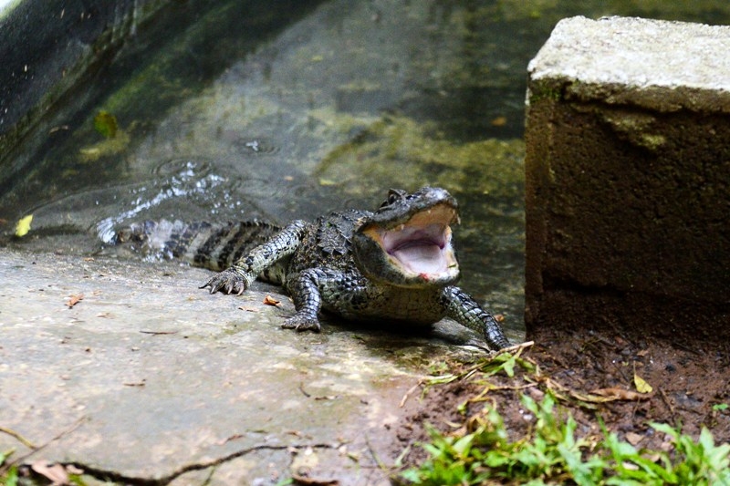 Denominado Perez, o jacaré conta com um parceiro – ou nem tanto assim, visto que machos dessa espécie não se permitem compartilhar amigavelmente mesmo território – nesse santuário do Zoo, trata-se do Diniz, um exemplar da espécie, com 18 anos, mais de 2 metros de comprimento e com mais de 50Kg. Já esse mais novo morador é bastante novo, com pouco mais de um ano, 6,2Kg e pouco mais de 1m de comprimento. Em suas primeiras triagens para aferições comuns à saúde, tem dado bastante trabalho à equipe, mas segundo o veterinário é um comportamento comum a essa faixa etária e espécie de réptil.
